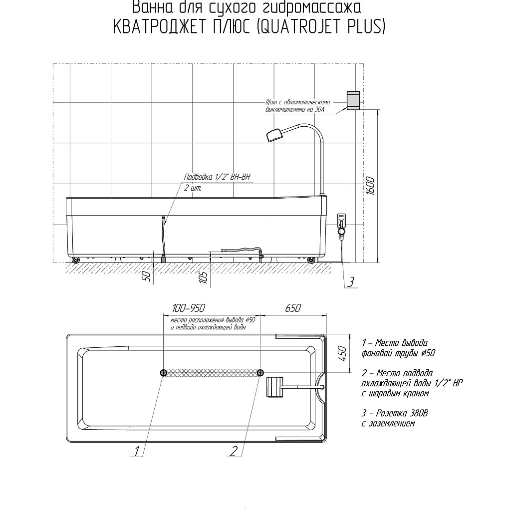 Ванна для сухого гидромассажа КВАТРОДЖЕТ Плюс предназначена для воздействия на мягкие ткани тела человека при помощи струй воды, но без непосредственного контакта с жидкостью, с целью оказания болеутоляющего действия, устранения хронических воспалительных процессов, улучшения кровоснабжения и трофики массируемых мягких тканей и внутренних органов благодаря рефлекторному механизму, облегчения выведения лишней жидкости из организма, создания расслабляющего и успокаивающего эффекта, активизации метаболизма. Основным отличием модели КВАТРОДЖЕТ Плюс от базовой версии КВАТРОДЖЕТ является наличие двух гидромассажных насосов, создающих более высокое давление при работе 4-х форсунок и значительного расширения алгоритмов массажа за счет полностью переработанной системы движения каретки.
